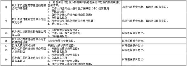 处理情况中,解除医保服务协议的有14家,暂停医保服务协议15家。另有3家已终止医保服务协议的机构,明确3年内不再受理其协议定点申请。